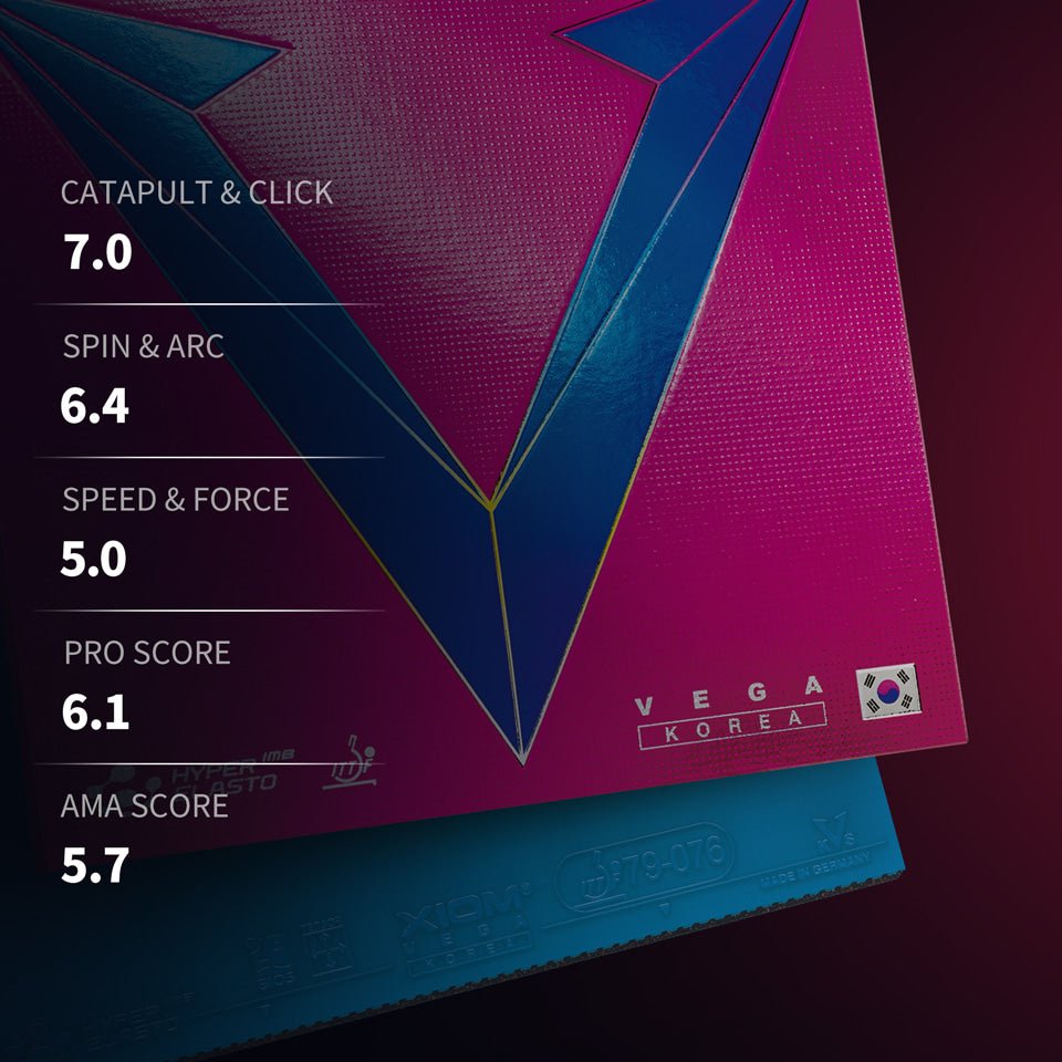 XIOM Korea este apreciat pentru echilibrul său între spin foarte ridicat și controlul precis, fiind conceput să susțină stilul rapid și tehnic din tenisul modern de masă coreean.