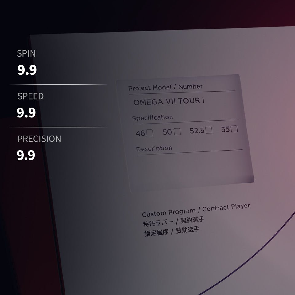 Fața de paletă XIOM Omega 7 Tour i este un cauciuc de top personalizat pentru jucătorii din echipa națională, cu tehnologii avansate precum ELASTO FUTURA, CYCLOID și CARBO SPONGE oferind o combinație excelentă de control, viteză și spin pentru jocuri agresive de nivel înalt.