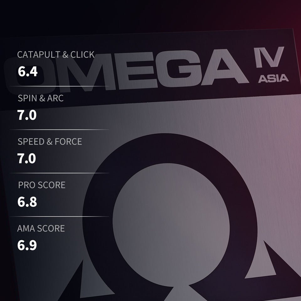 Fata de paletă tenis de masă XIOM Omega 4 Asia este o față ofensivă, destinată jucătorilor profesioniști care urmăresc putere și spin extrem, combinată cu un control solid. Aceasta are o spumă foarte tare, cu duritatea în jur de 48 grade, ce oferă viteză foarte mare (aproximativ 13 pe o scară de performanță), spin ridicat (aproximativ 12) și precizie înaltă (8.5), ideală pentru atacatori dinamici și jucători cu tehnici agresive.